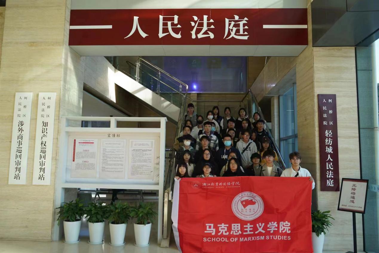 12月8日下午,马克思主义学院“思想道德与法治”教研室组织部分师生来到柯桥区轻纺城人民法庭,开展“感知浙江——‘德法’课实践教学活动”,沉浸式体验,让法制教育“活”起来。