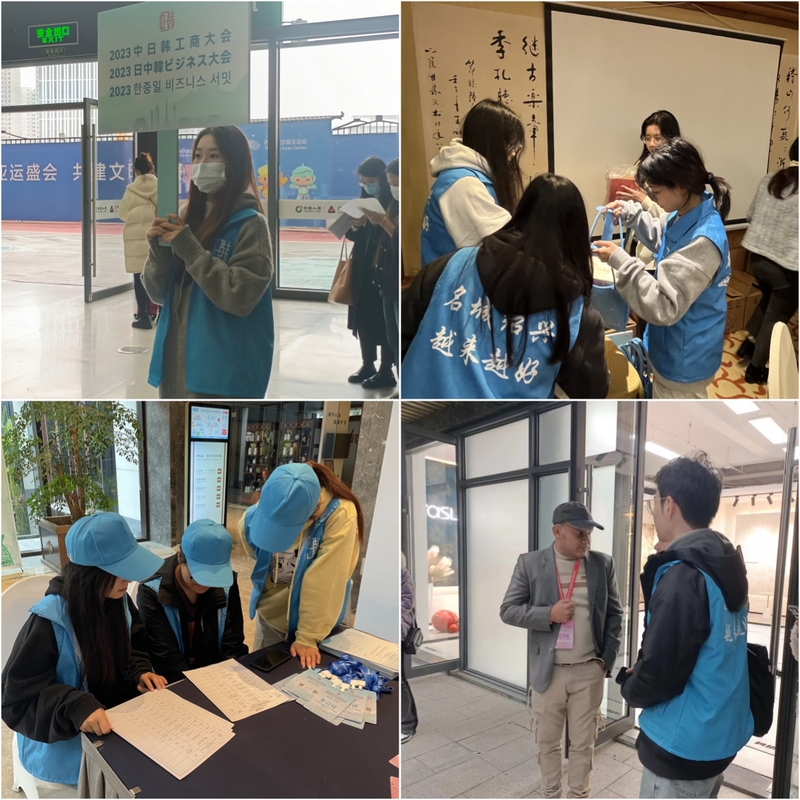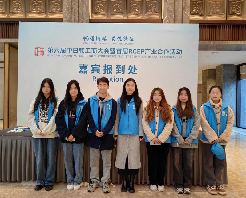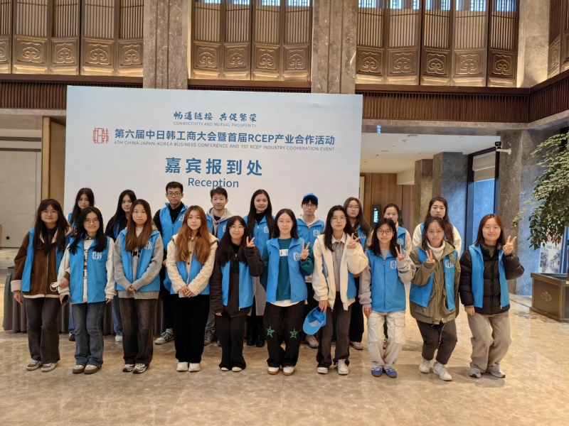 12月11-13日,第六届中日韩工商大会暨首届RCEP产业合作活动在绍兴盛大开幕。本次大会由中国国际商会、中国日本商会、中国韩国商会主办,浙江省贸促会和绍兴市人民政府承办。大会以“畅通链接、共促繁荣”为主题,旨在促进交流,推动合作,共同助力区域经济繁荣。英语学院21级翻译专业8名学生和东方语言学院学生代表参加此次活动志愿服务。