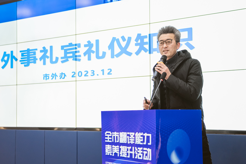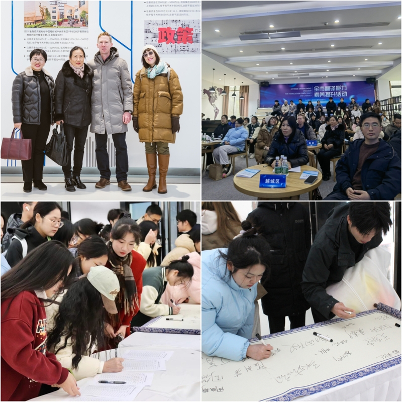 为提升我市翻译人才外事服务技能、翻译专业素养,用好“外语工具”,讲好绍兴故事,不断提高绍兴国际语言环境和对话能力,市外事发展促进中心于12月17日下午在浙江(绍兴)外国高端人才创新集聚区举办全市翻译能力素养提升活动。出席本次活动的有市机关外语干部、高校外语师生、外国高端人才创新集聚区外语爱好者等。英语学院组织师生代表近50人参加活动。
