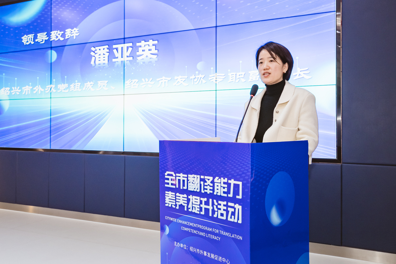 绍兴市外办党组成员、绍兴市友协专职副会长潘亚英在致辞中指出,翻译是国际交流的桥梁,是文化传播的使者。随着全球化的深入发展,翻译工作在国际交往、文化交流、经济合作等方面发挥着越来越重要的作用。本次全市翻译能力素养提升活动,旨在为翻译人才提供一个学习和交流的平台,通过讲座、经验分享等多种形式,帮助大家提高翻译水平。希望通过这次活动能够激发更多年轻人对翻译事业的热爱,培养更多的高素质翻译人才。