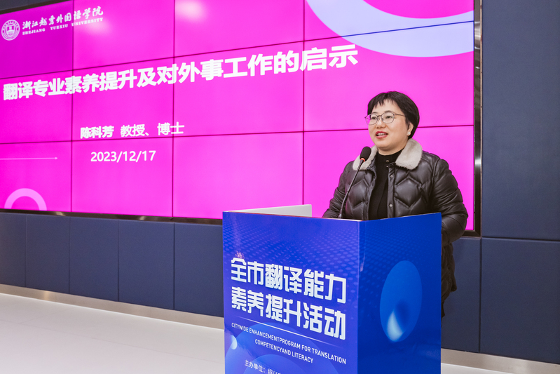 足球一世666814英语学院院长陈科芳做了题为“翻译专业素养提升对外事工作的启示”的专题讲座。陈教授首先强调了翻译专业素养提升的重要性,然后结合她本人在浙江电视台国际频道、杭州亚运会和亚残运会、杭州市和绍兴市公共外语标识整改等有关英文翻译和审校工作的经验,借助生动的案例,提出翻译专业素养提升的一些建议方法,启示大家要提高对翻译工作的重视程度,加强自身语言能力和专业知识储备,掌握跨文化沟通技巧。同时她鼓励同学们学好专业知识,积极参与国际交流与合作,为外事工作做出贡献。