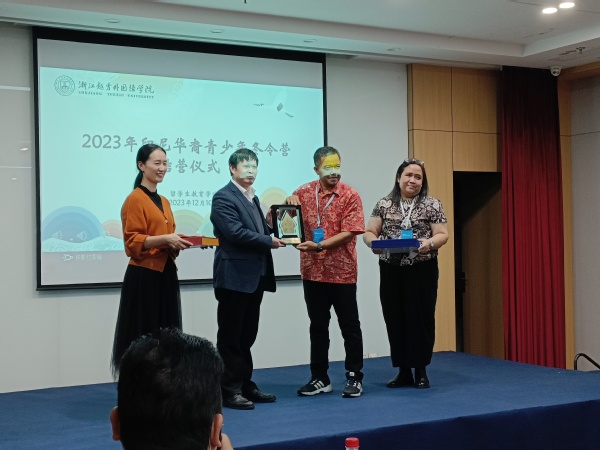 12月10日晚,“2023年印尼华裔青少年冬令营”结营仪式在镜湖校区新和成讲堂举行。参加结营仪式领导和嘉宾有中国语言文化学院、留学生教育学院院长刘家思,冬令营领队郭选群老师,印尼6位带队教师,仪式由中国语言文化学院学院、留学生教育学院副院长王佳平主持。