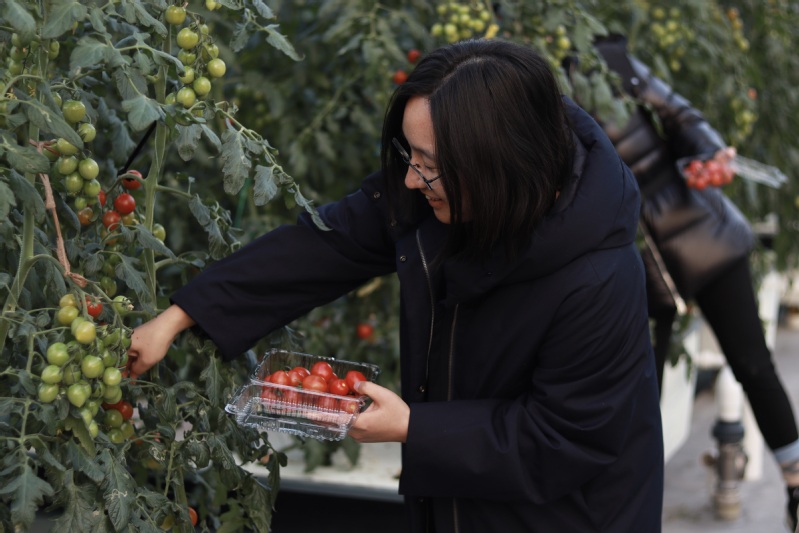 老师们随后又前往谢家坞村兰亭湖畔,参观两个大型雾耕大棚,体验高科技“植物工厂”。据介绍,雾耕大棚占地面积12亩左右,主要用于果蔬无土栽培,是当前柯桥区最大的雾耕大棚基地。大棚内部建有全智能控制的植物高效生产系统,每种瓜果蔬菜营养液的配比全部通过电脑自动调节,雾化到根部,整个营养的吸收率能达到95%,生长周期缩短三分之一,从而形成标准化生产。老师们在参观和采摘的过程中充分体会到了农业现代化的高科技。