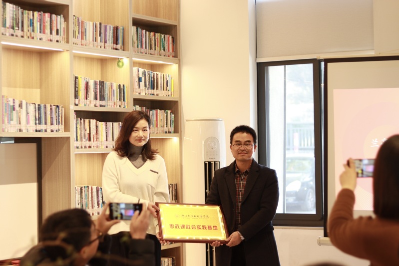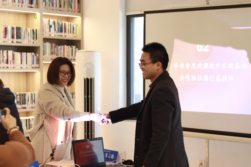会议伊始,赵海峰院长和兰亭书舍负责人沈芝琴女士签订思政课社会实践基地合作协议并授牌。兰亭书舍作为绍兴柯桥区兰亭街道首个城市书房,融入了浓厚的书画元素,重现了兰亭曲水流觞的人文底蕴。此次合作是城市书房和高校双方发挥各自优势、整合各自资源,共同推进城市书房与思政教育深度合作、创新联动的一次有效尝试。