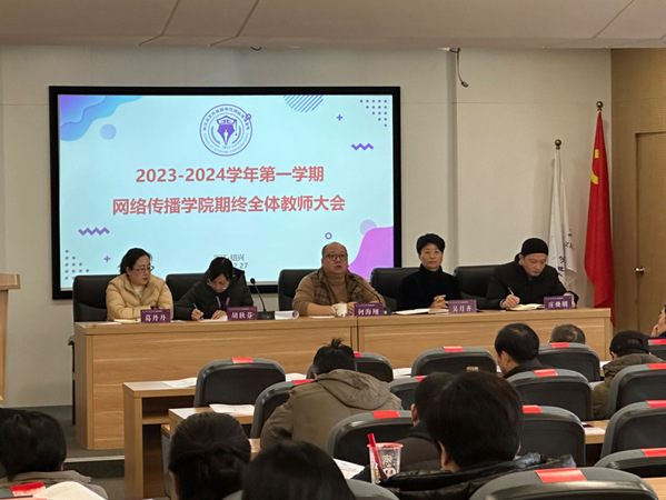 12月27日下午,2023-2024学年第一学期网络传播学院期末全体教师大会在4-301顺利召开。本次会议由学院党委书记吴月齐主持,学院院长何海翔院长、胡秋芬副院长、庄焕明副院长、葛丹丹副书记及全体教师出席本次会议。
