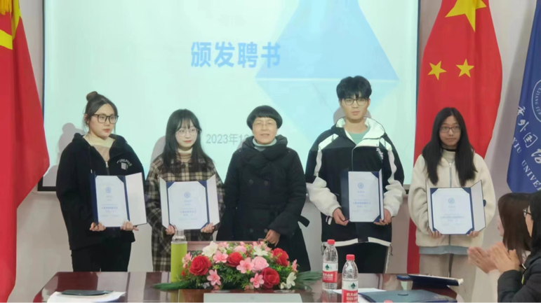 仪式最后,李建凤书记宣布了第一届国际商学院公寓自管会干部名单,并对公寓自管会的成立表示祝贺。她为部门干部颁发聘书,并勉励新一任干部戒骄戒躁,继续努力。