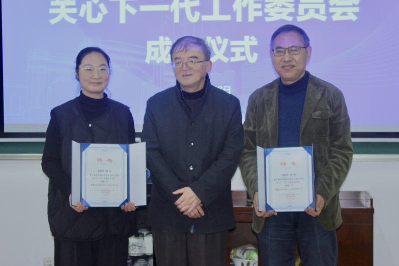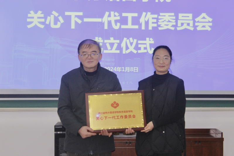 学校关工委主任徐左平为东语学院关工委授牌,并为东语学院关工委主任颁发聘书。随后,东语学院关工委主任邱鸣为学院关工委委员颁发聘书。