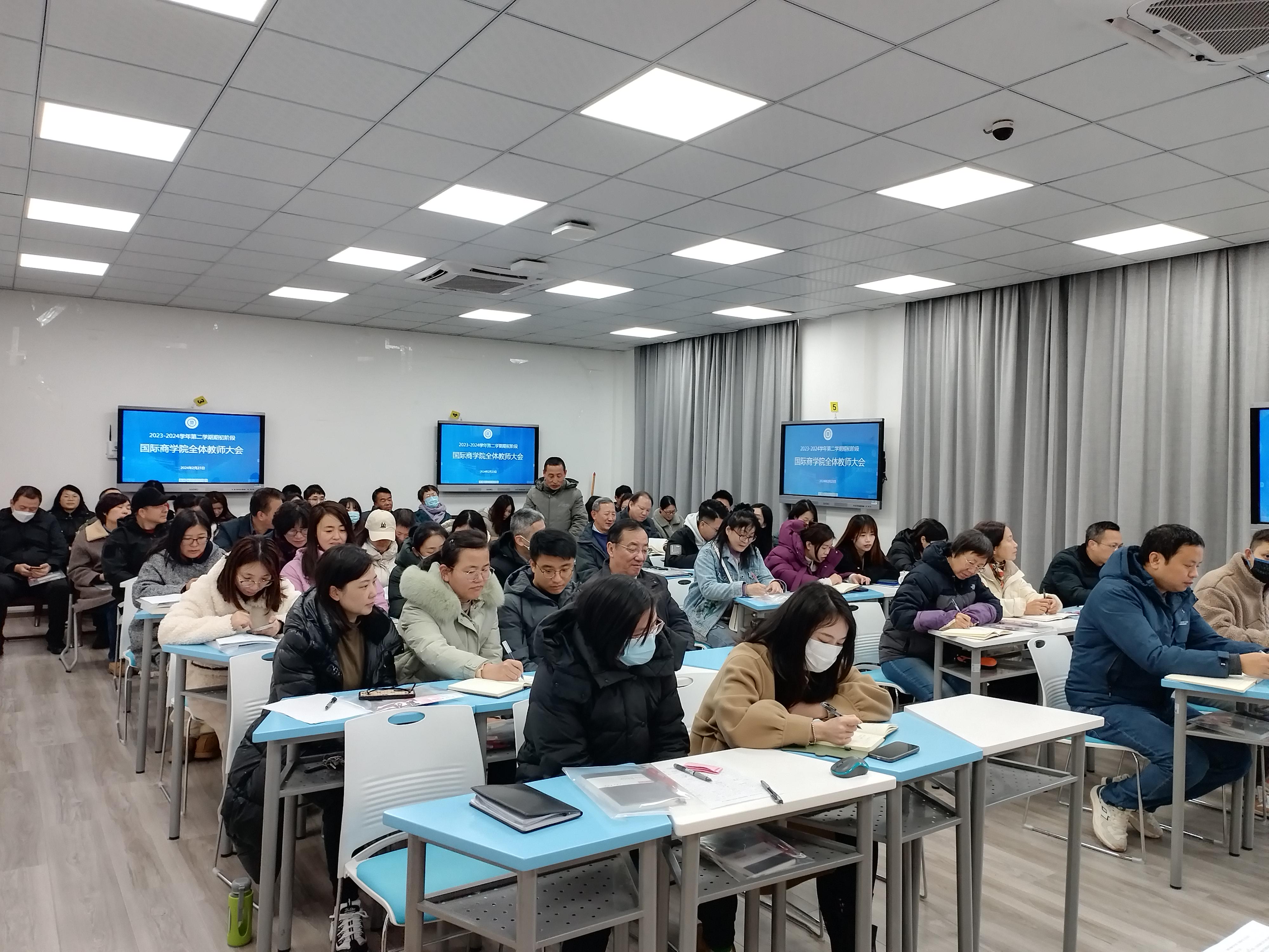 2月23日上午9:30,国际商学院召开2023-2024学年第二学期期初全体教师大会,学院全体教职工参加会议,会议由杨小平院长主持。