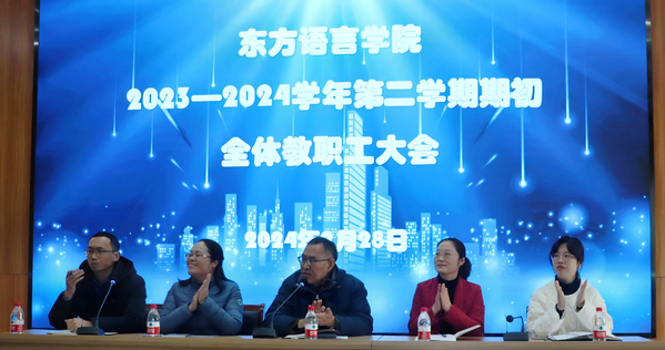2月28日下午,东方语言学院召开2023-2024学年第二学期全体教职工大会。学院党政领导及全院教职工参加会议,会议由邱鸣院长主持。