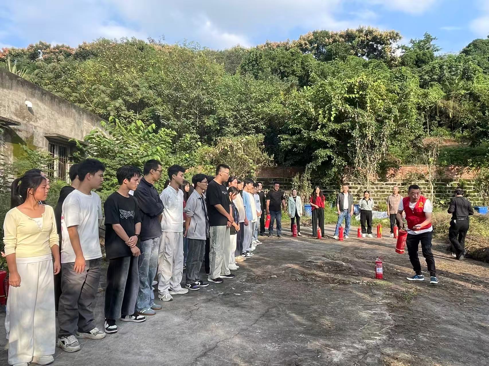 本次演练分为三个阶段进行,首先是教学场所的防震应急疏散演练。当地震应急警报声响起,任课教师指挥各班学生安全躲避,并安全、有序、快速地按照预定路线撤离至足球场。第二阶段,演练转入学生宿舍区域。在消防警报触发后,全体学生依照既定消防路线,迅速向指定安全区域疏散。最后开展消防安全技能培训,切实巩固演练成效:谢兵老师现场为大家讲解灭火器的类型、使用方法和操作要点,内江校区新进教师、保安人员、食堂工作人员、宿管人员、各班班长、安全员等关键岗位人员在亲身体验使用干粉灭火器扑灭油盆火的过程中,将理论转化为实操技能,提高了消防应急能力。
