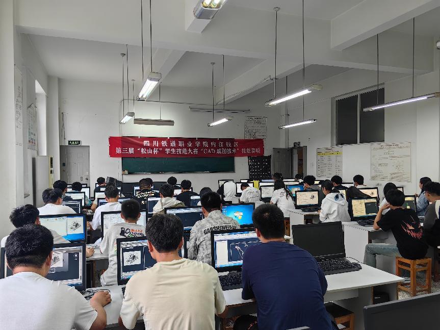5月6日,内江校区在实训楼软件实训一室举行了第三届“松山杯”学生技能大赛“CAD成图技术”赛项。此次比赛全面考查了学生在机械制图与CAD成图技术方面的能力,共有42位参赛选手参加。