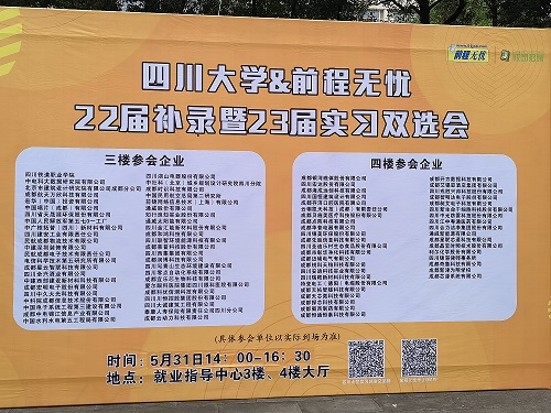 为加快推进队伍建设工作,加大招聘力度,提高招聘效率,2022年5月31日,人事处代学灵处长带领工作人员参加了四川大学&前程无忧22届补录暨23届实习双选会。