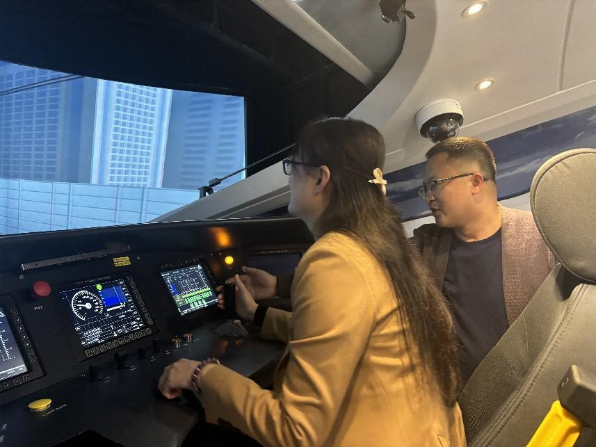 座谈会前,梁琼处长一行实地参观了pp电子复兴号六自由度模驾、城轨综合演练场、动车组检修实训室、复兴号模拟驾驶实训室,就实训基地建设、人才培养等方面进行了交流。