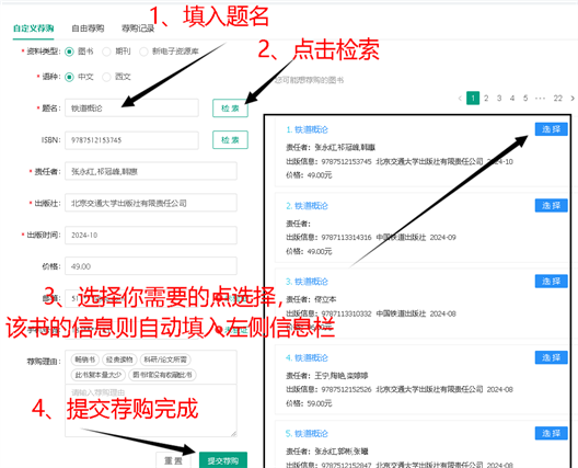 请尽量提供详细的图书信息(如书名、作者、ISBN等),以便图书馆准确采购。