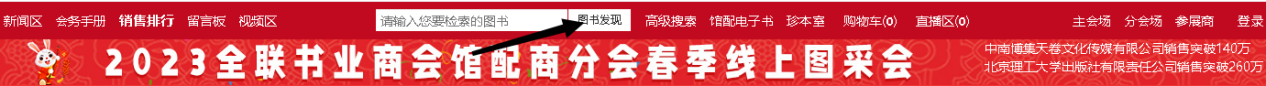 各位师生/读者: 大家好! 2023全联书业商会馆配商分会春季线上图采会如约而至。本届图书采会将展示数百家出版单位全品种图书、数十万种新书资源应有尽有,一键登录为你营造身临其境的体验感。更有多场出版社直播活动等待大家参与。 现将图采会相关活动指南呈现如下: 一、图采会时间:2023年3月14日-3月20日 图采会网址:https://d.cxstar.com 登录名:SCTDR1107 登录:点击右上角【登录】