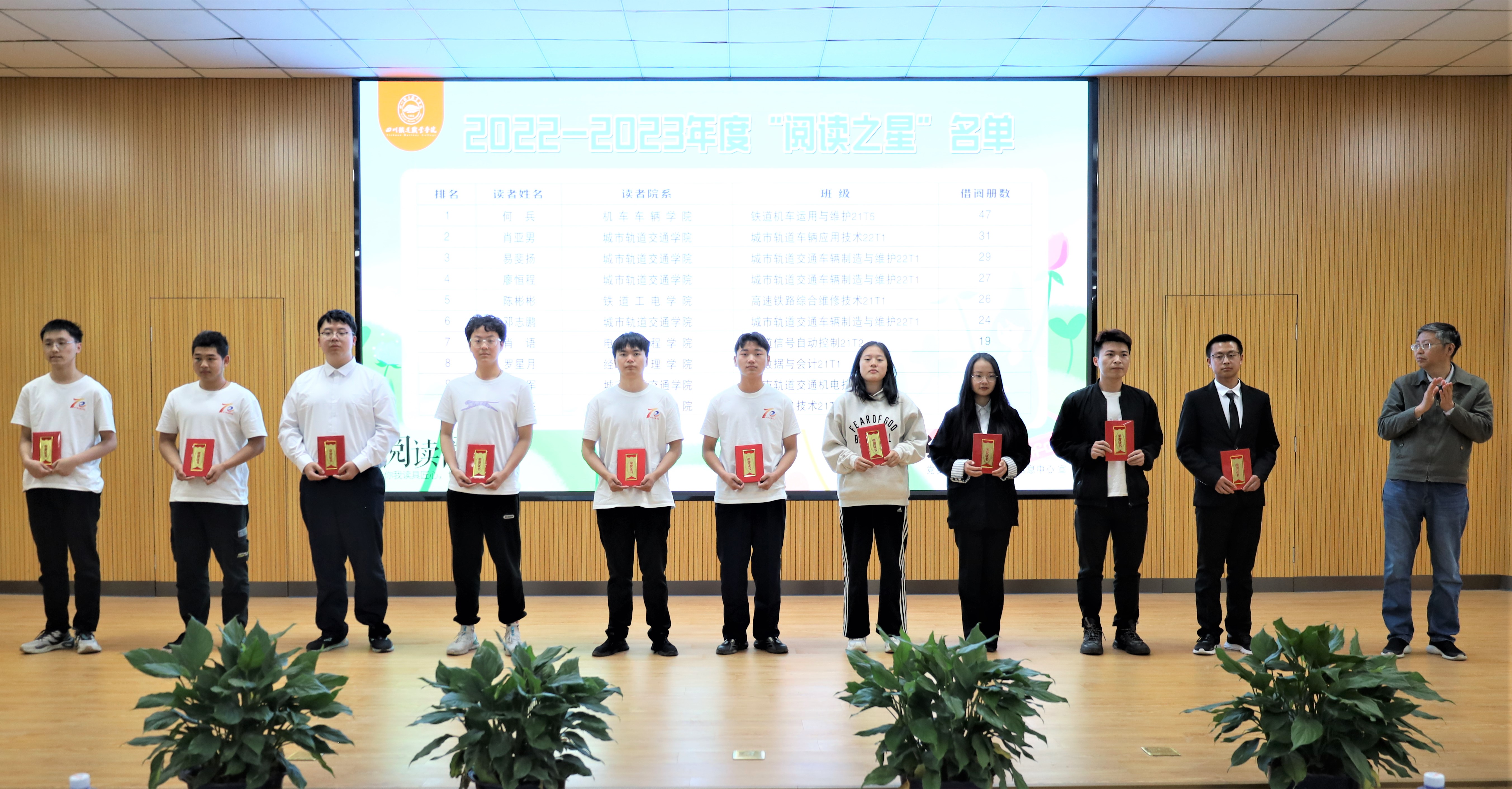 学生代表发出倡议 最后,吴斌副校长为荣获2022年度“阅读明星”的同学颁发了荣誉证书,表扬并鼓励大家阅读。获奖学生有同学何兵、肖亚男、易斐扬、廖恒程、陈彬彬、邓志鹏、肖语、罗星月、许苗军、郭飞。