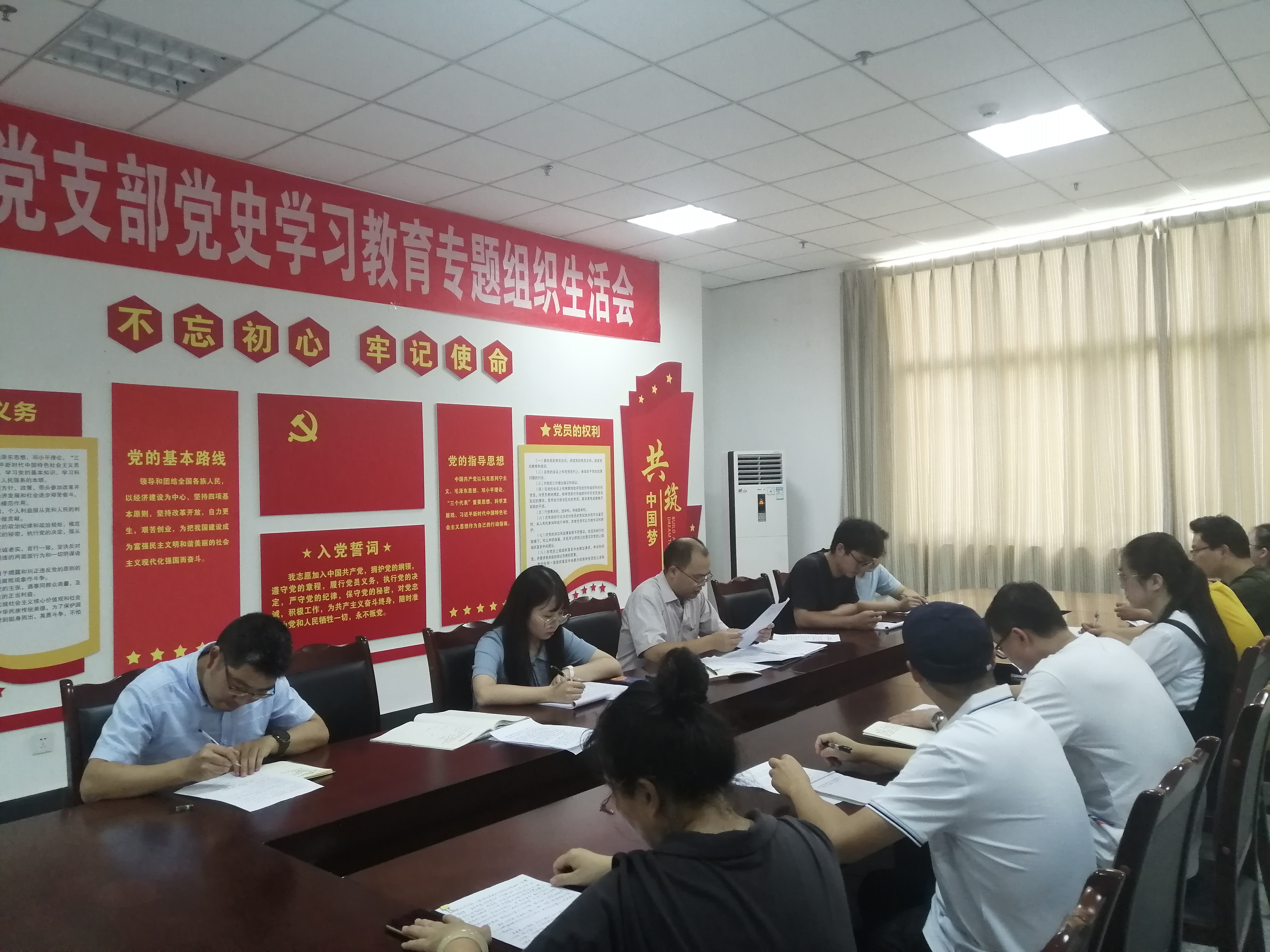 会上,党支部何书记报告了半年来党支部工作情况特别是开展党史学习教育情况,通报了党支部委员会检视问题情况,并提出了整改措施,大家一致认为,红色教育要保持,红色资源建设要及时,党建工作要抓实,整改问题要落实。随后,支部党员联系思想和工作实际逐一发言,围绕“习近平总书记在党史学习教育动员大会上的重要讲话、习近平总书记在庆祝中国共产党成立100周年大会上的重要讲话和党中央指定的4本学习材料”,对照党史学习教育目标要求谈党史学习情况、谈心得体会、谈感悟收获、讲差距不足、进行批评与自我批评并根据支部要求分享与展示学习党史材料读书笔记。