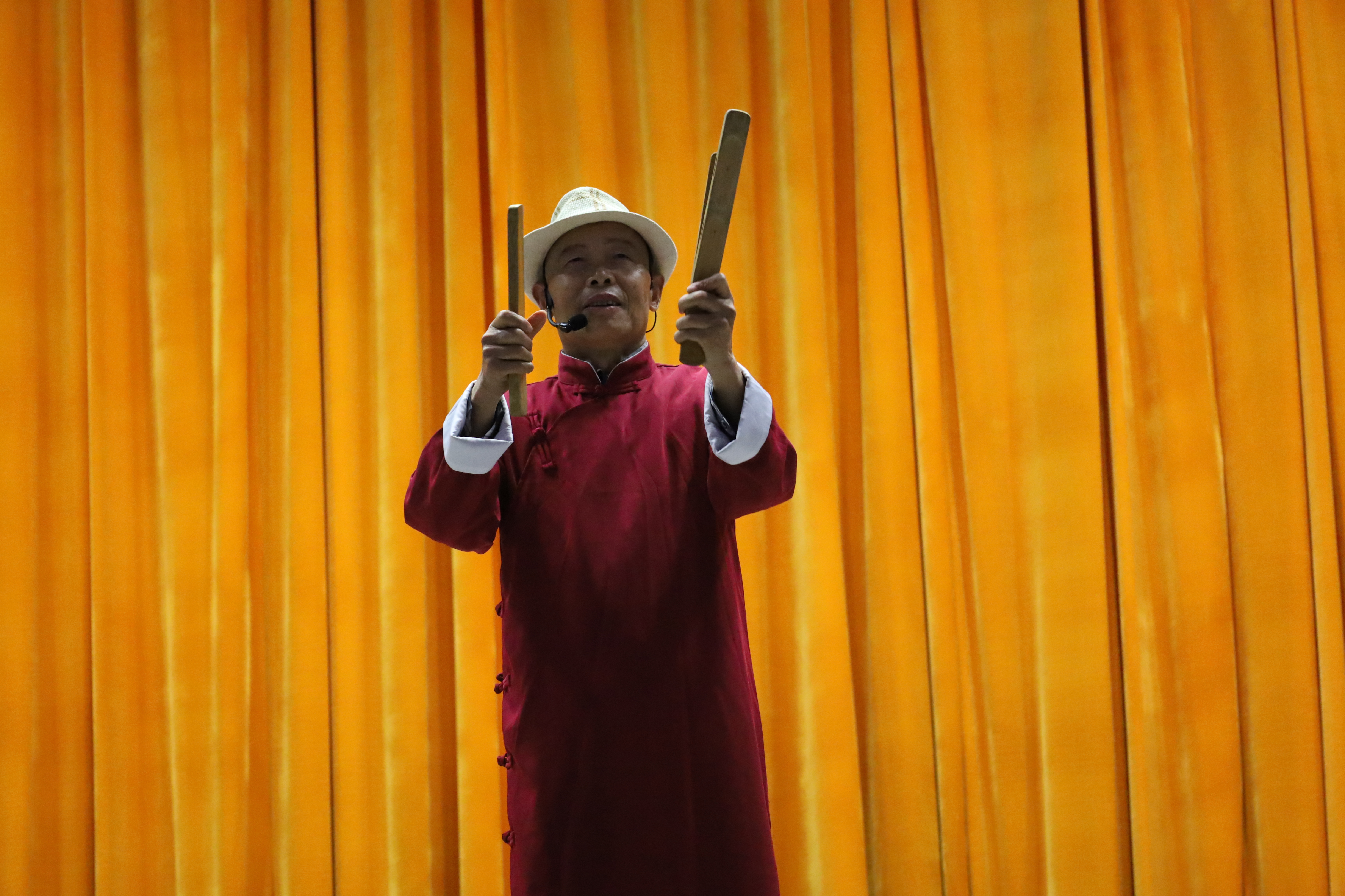 本次讲座以四川省民间文艺家协会会员、四川省曲艺家协会会员罗雪松先生的金钱板表演《话说老同学》开场,表演通过群众喜闻乐见的形式传播防范知识、提高防范能力。