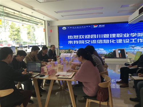 胡永松处长对我院的到访表示热烈欢迎,介绍了信息化建设平台总体情况及未来学工系统育人趋势,罗泽林处长对成都农业科技职业学院学工系统状况进行介绍,信息中心信息科长郑洪凯对农职院信息化建设情况做了全面介绍。