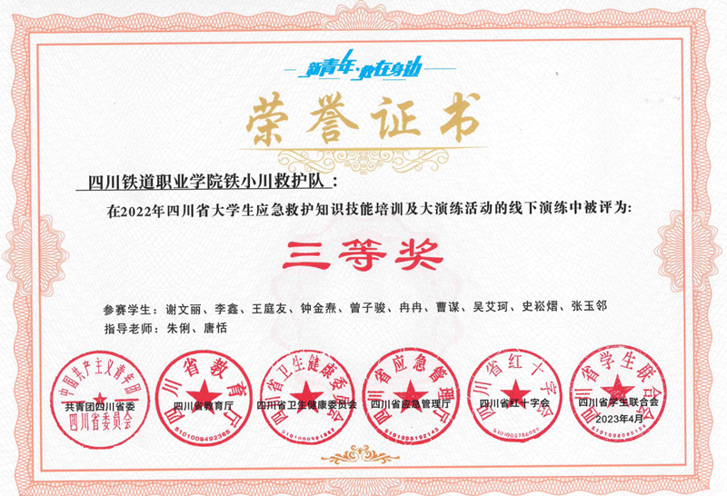 近日,由共青团四川省委、四川省教育厅、四川省卫生健康委员会、四川省应急厅、四川省红十字会、四川省学生联合会等六部门共同主办的首届“新青年·救在身边”四川省大学生应急救护知识技能大演练活动落下帷幕。pp电子选派10名同学组成的“铁小川救护队”参加了本次大演练,荣获三等奖。