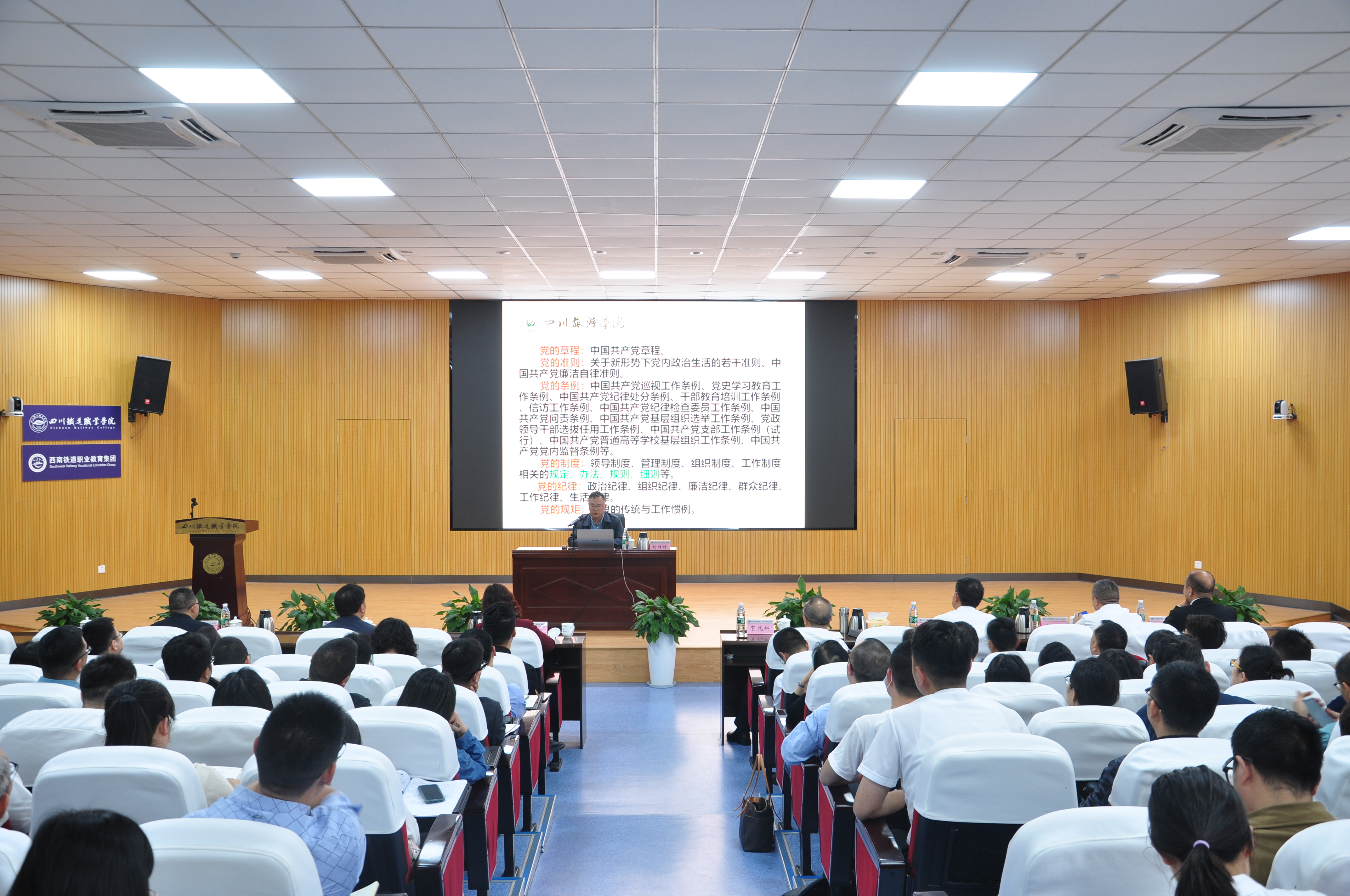 根据党纪学习教育读书班安排,4月24日,学校邀请四川旅游学院原党委副书记、纪委书记、研究员杨祥禄到校开展题为《学习贯彻<中国共产党纪律处分条例> 全面加强党的纪律建设》专题辅导。党委书记贺兆轩主持会议。