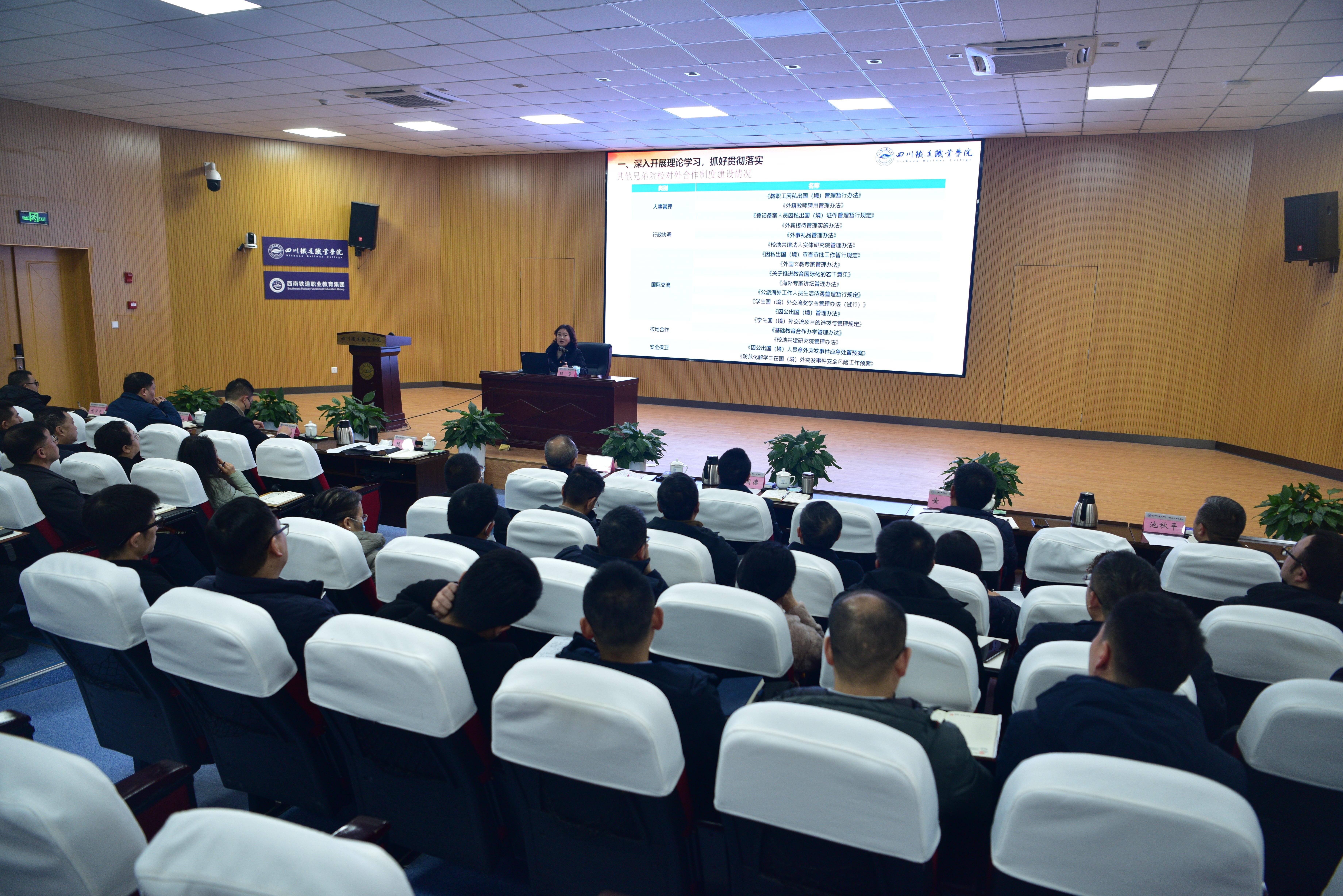 12月28日上午,学校召开第7次党委理论学习中心组(扩大)学习会议,围绕习近平总书记在中共中央政治局第十次集体学习和在中央经济工作会议上的重要讲话精神,以及最新讲话和指示精神,贯彻落实省委十二届四次全会精神,学习宣传《中华人民共和国爱国主义教育法》。主题教育省委第十二巡回督导组侯国德、孙振坤到会指导。党委书记贺兆轩主持会议并讲话。 会上,大家集中观看了微纪录片——《习近平调查研究的故事》,党委宣传统战部负责人围绕爱国主义教育、学校引进的高层次人才、城市轨道交通学院专任教师王静教授围绕专业建设高质量发展、副校长黄恩兴围绕统筹人才模式培养改革和科研服务能力建设进行交流发言,校长赖芳以“推进产教深度融合发展、增强高质量发展新动能”为题进行交流发言。