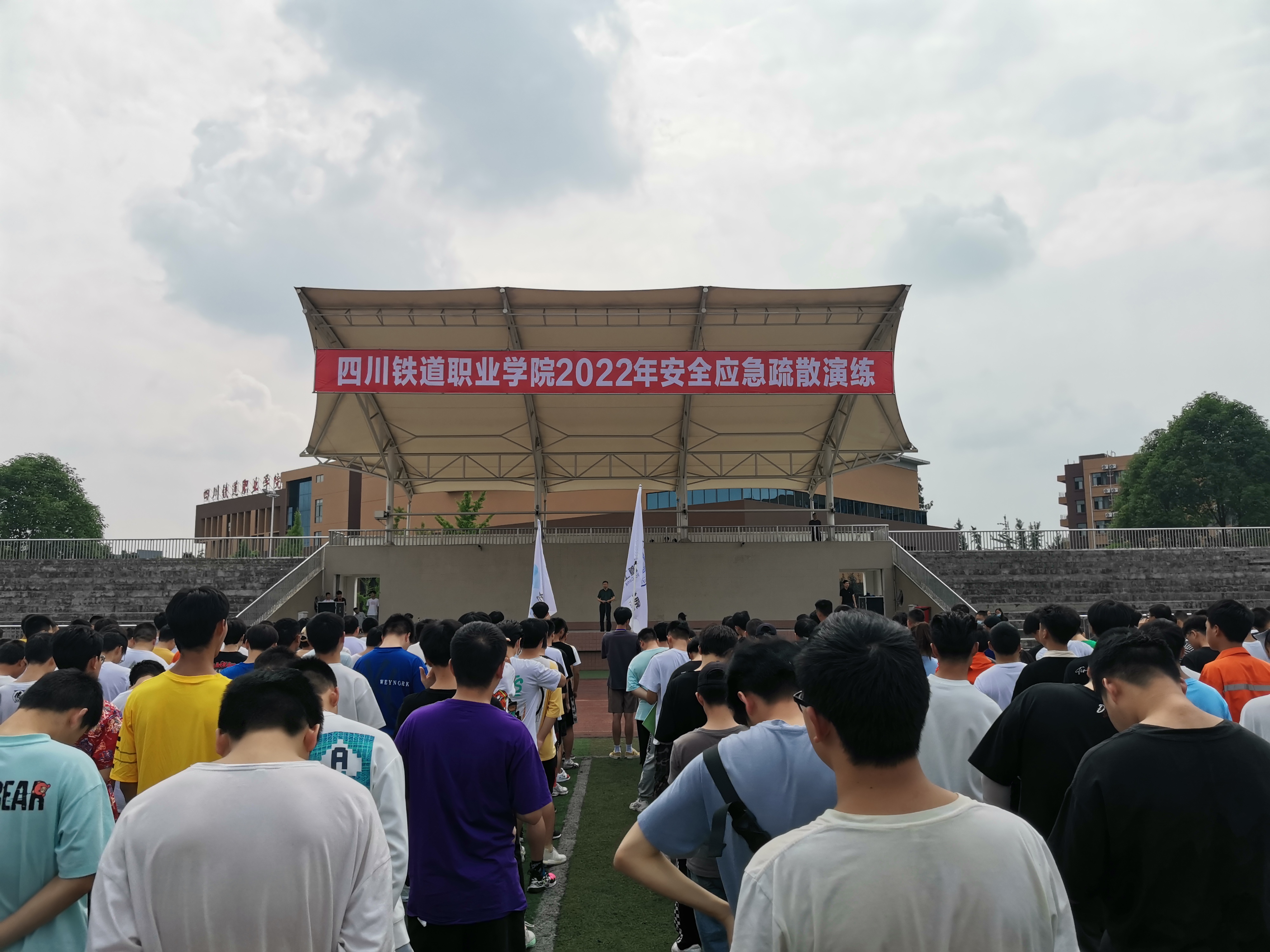 活动前,学校制定了详细的应急疏散预案,明确全体教师的岗位职责和各班学生逃生的路线,以确保演练顺利。15点30分,随着警报声响起,教室、实训场、图书馆、学生公寓等在岗教师迅速组织学生紧急避险,随后按广播指令从各个安全通道紧急疏散到安全空旷的操场紧急避难所。学生们以班为单位迅速整队,清点报告人数。演练过程紧张有序,达到了预期效果。