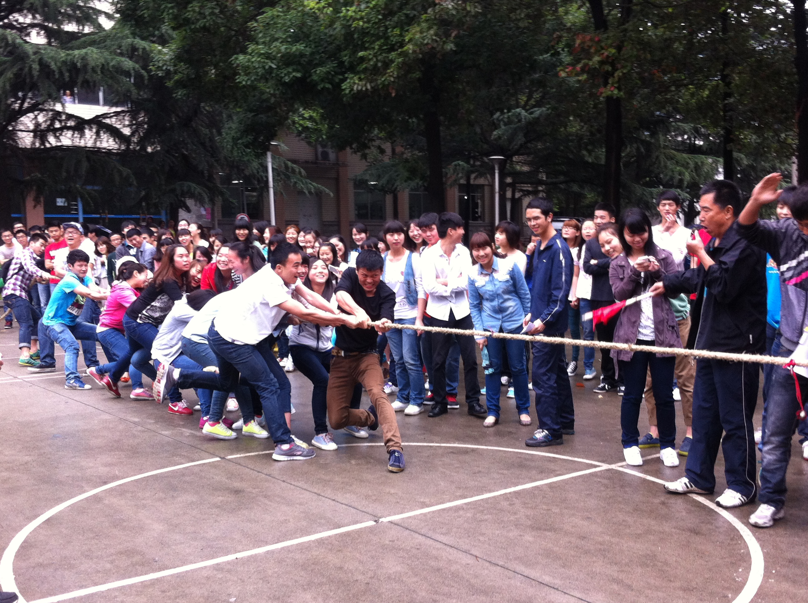 月16日14点30分,院团委在院篮球场举行了以“共运动 健体魄 展风采”为主题的拔河比赛。