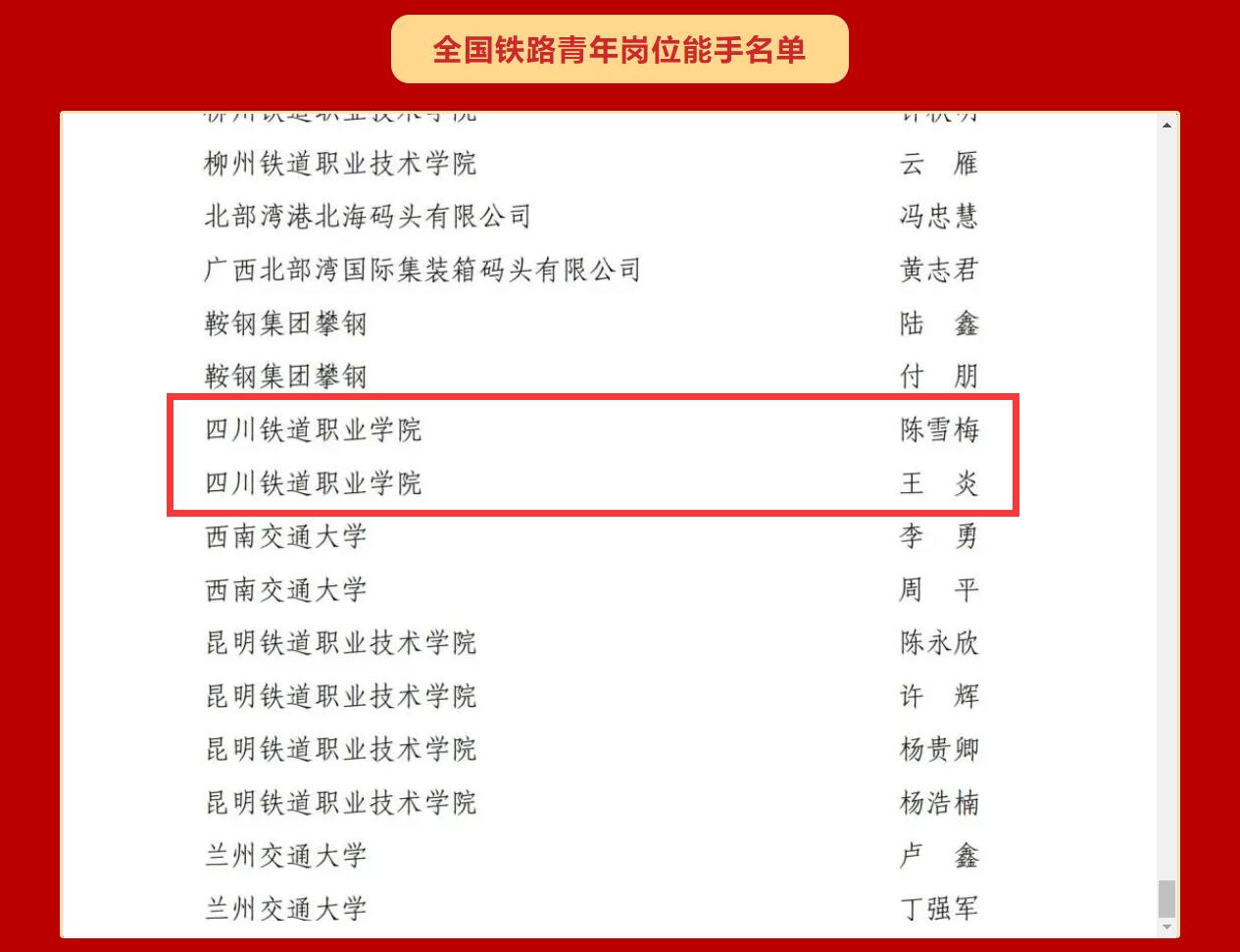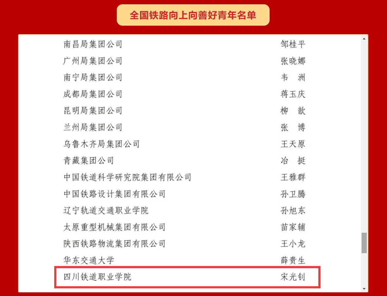 4月9日,全国铁道团委公布了2023年度全路“双创立功”竞赛、青年岗位能手、向上向善好青年评选结果,pp电子“铁小川”志愿服务团队获评“全国铁路青年安全生产示范岗”,陈雪梅、王炎同学被授予“全国铁路青年岗位能手”称号,冉冉、宋光钊同学被授予“全国铁路向上向善好青年”称号。