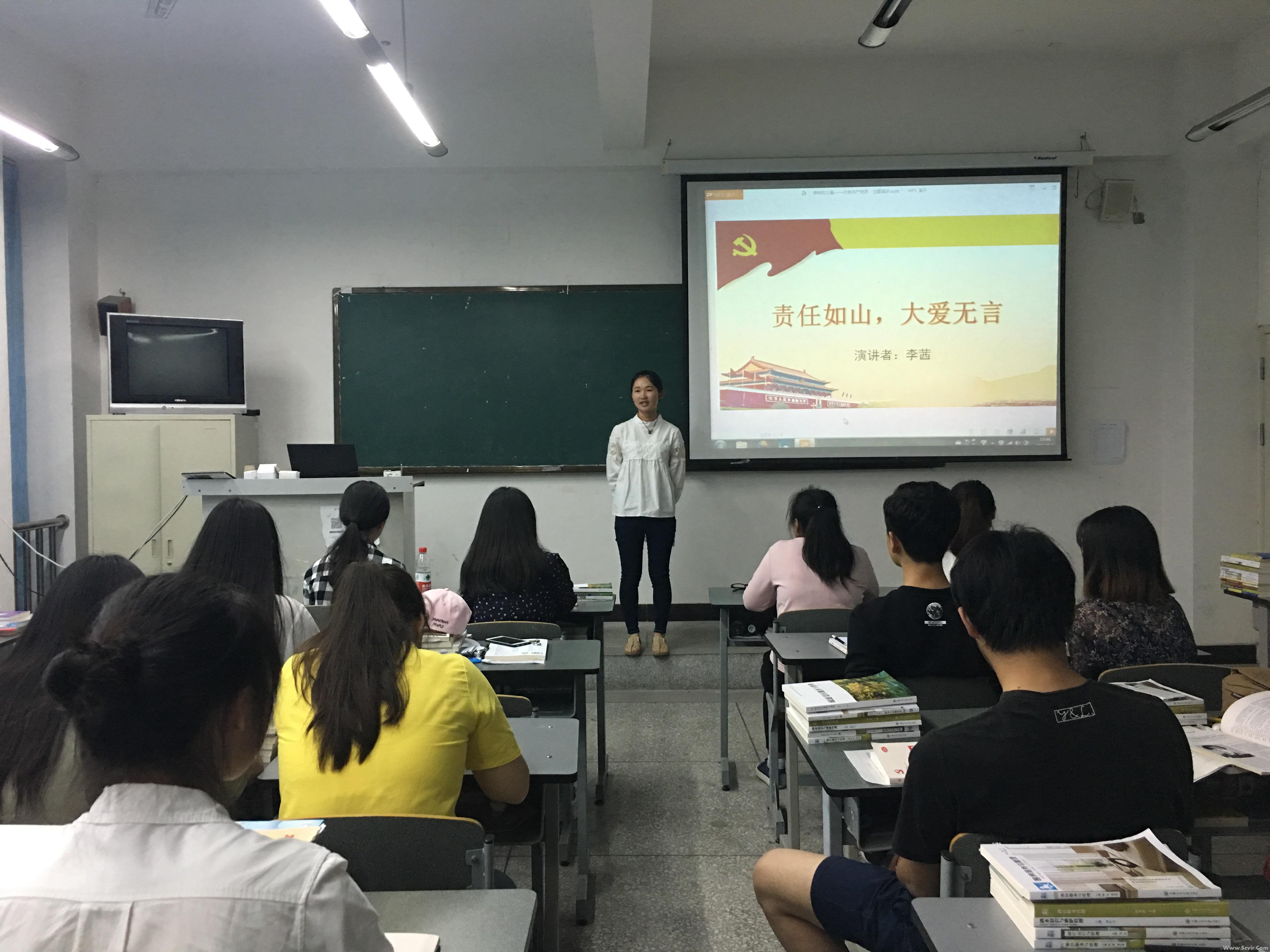 为继续深入推进我院“两学一做”学习教育活动,以身边先进典型为榜样,激励入党积极分子,培养后备力量,2017年5月1日晚,管理系在2513教室举办了“榜样的力量”主题演讲,辅导员马琴老师、第十三期入党积极分子培训班第五组成员参加了此次活动。