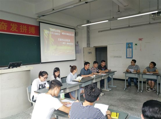 图为龙书记(左四)为大家讲课